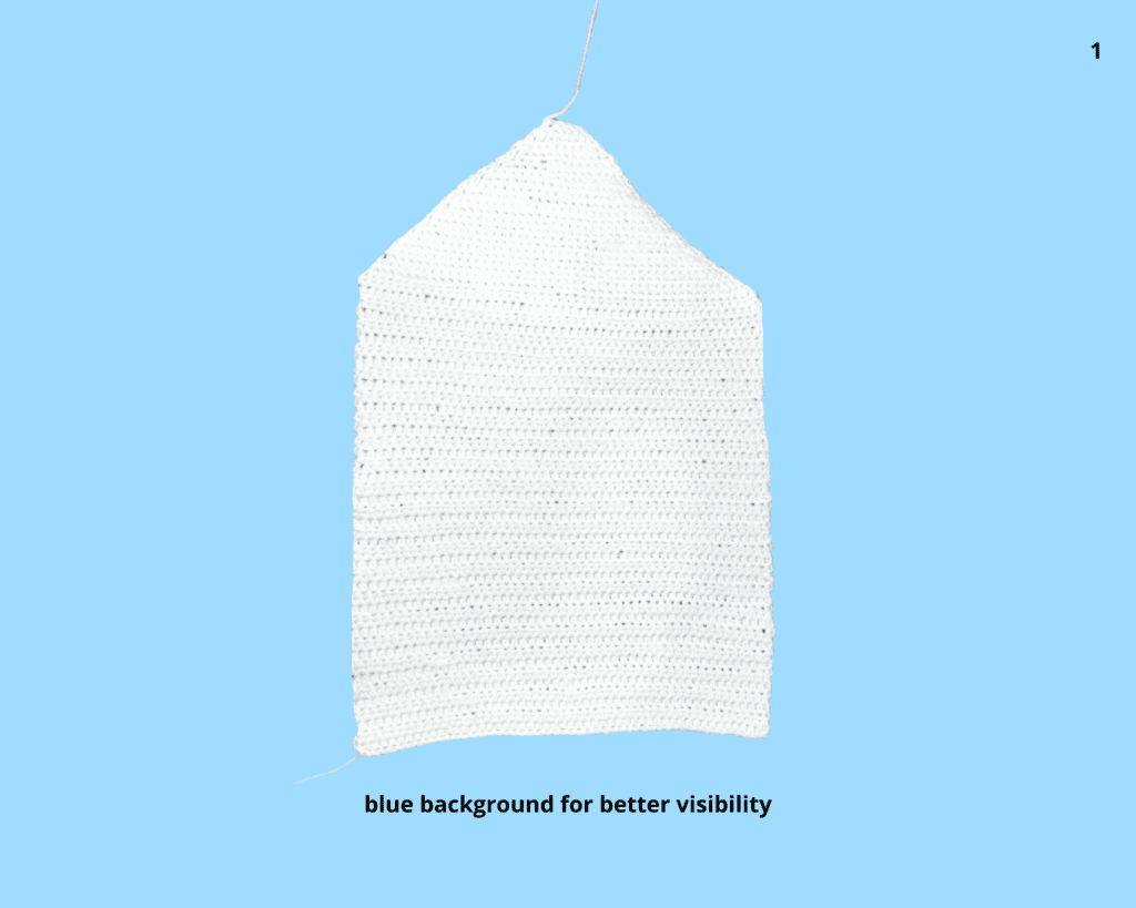 - Note: At this point, fold your rectangle in half and check the size. It should measure ~7 in. if you followed my gauge. Add more rows if necessary.
