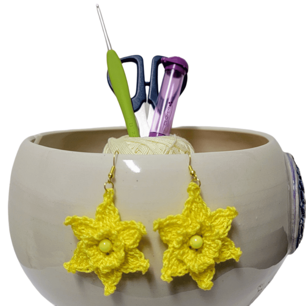 Introducing to you a brand-new crochet pattern called *I See The Light* earrings! It’s almost springtime, which means the sun shines, the days grow longer and warmer, the grass is greener, and we eagerly await the trees and flowers to bloom! These fanciful, vibrant earrings are lovely additions to your on-trend outfits. They instantly lift my spirits every time I see them! You can complete a pair using this very simple pattern in about 30 minutes 🙂 It’s the ideal add-on accessory or last-minute present for your mom, sister, or friends!