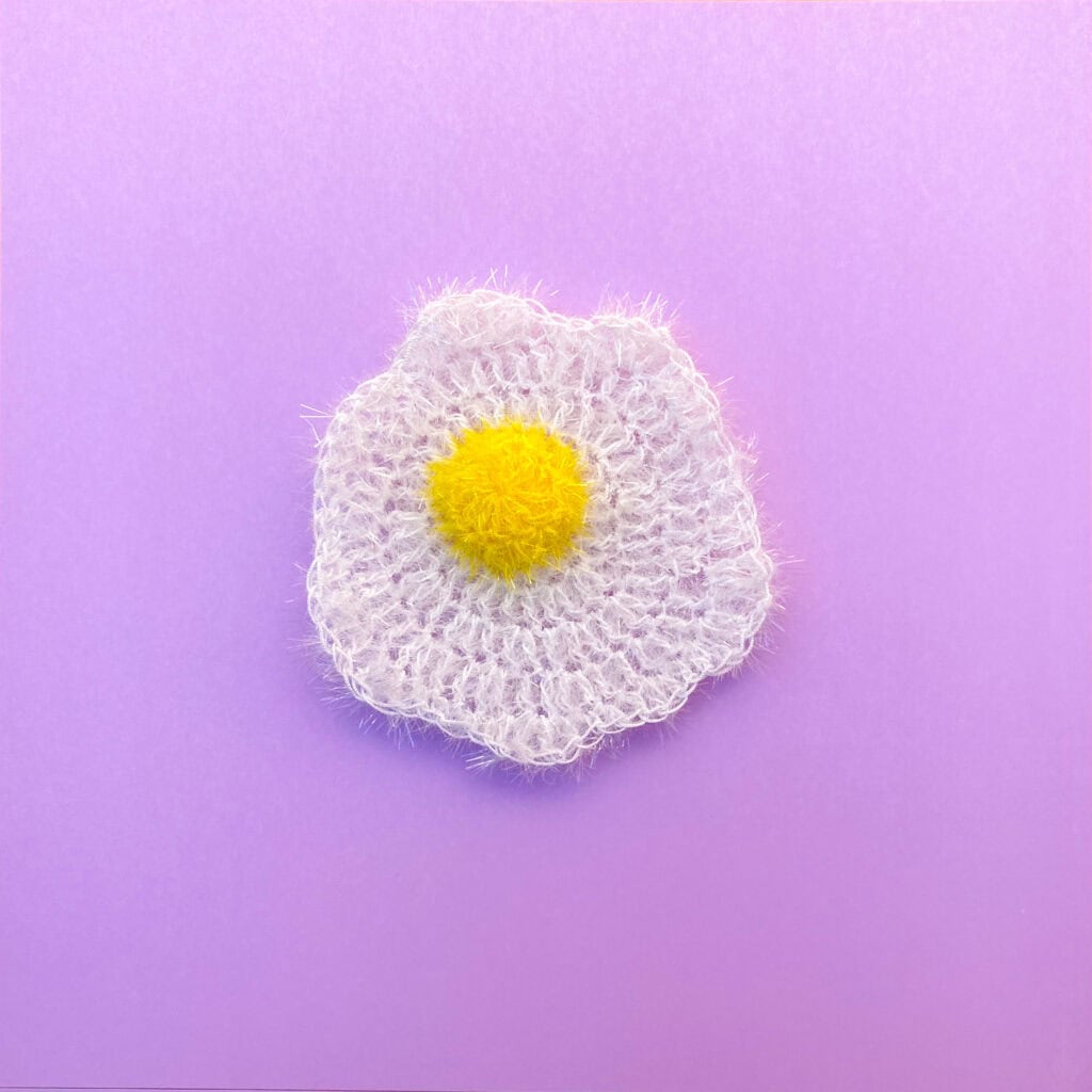 - Note: In the next round, we will create the fried egg edges. I love to play around with making each of the edges unique! You can create curves and ruffled edges by combining hdc, dc, sc, and slst stitches. For the example in the image, follow the steps in rnd 5 below.