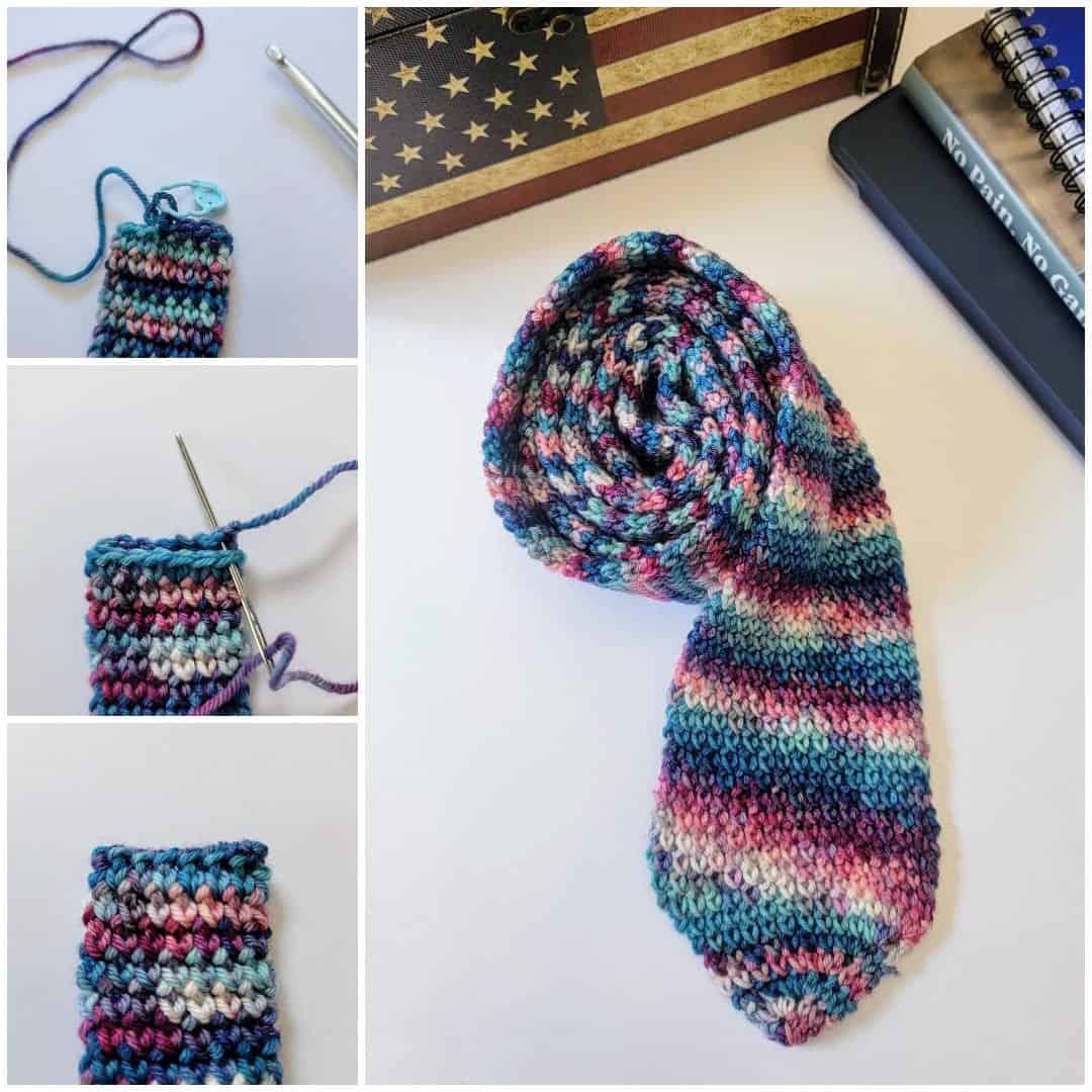 Presenting the Tie Dye Necktie! Forbidden Fiber Co.’s Fortitude (Fingering Weight) Yarn was used to make the sample of this pattern. I thought it turned out great, especially with the gorgeous tie-dye stripes created by this amazing hand-dyed yarn! Do you agree?