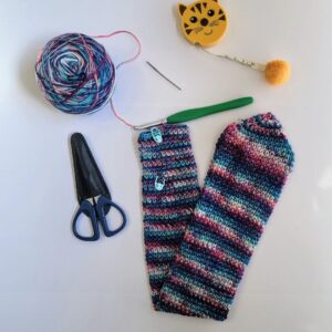 You’re all finished! 🙂 Please don’t hesitate to reach out with questions regarding this pattern. And I would love to see your Tie Dye Necktie version! Please tag me @stringsandcuddles and use these hashtags to share: #stringsandcuddles, #stringsandcuddlesdesigns, #tiedyenecktie