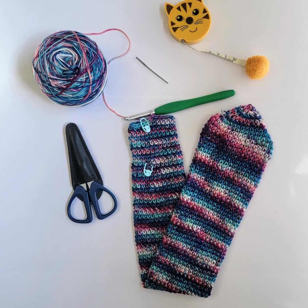 - Round 92 – 100: 1 CSSC in each st around. This measures approximately 20 inches. – 22 sts