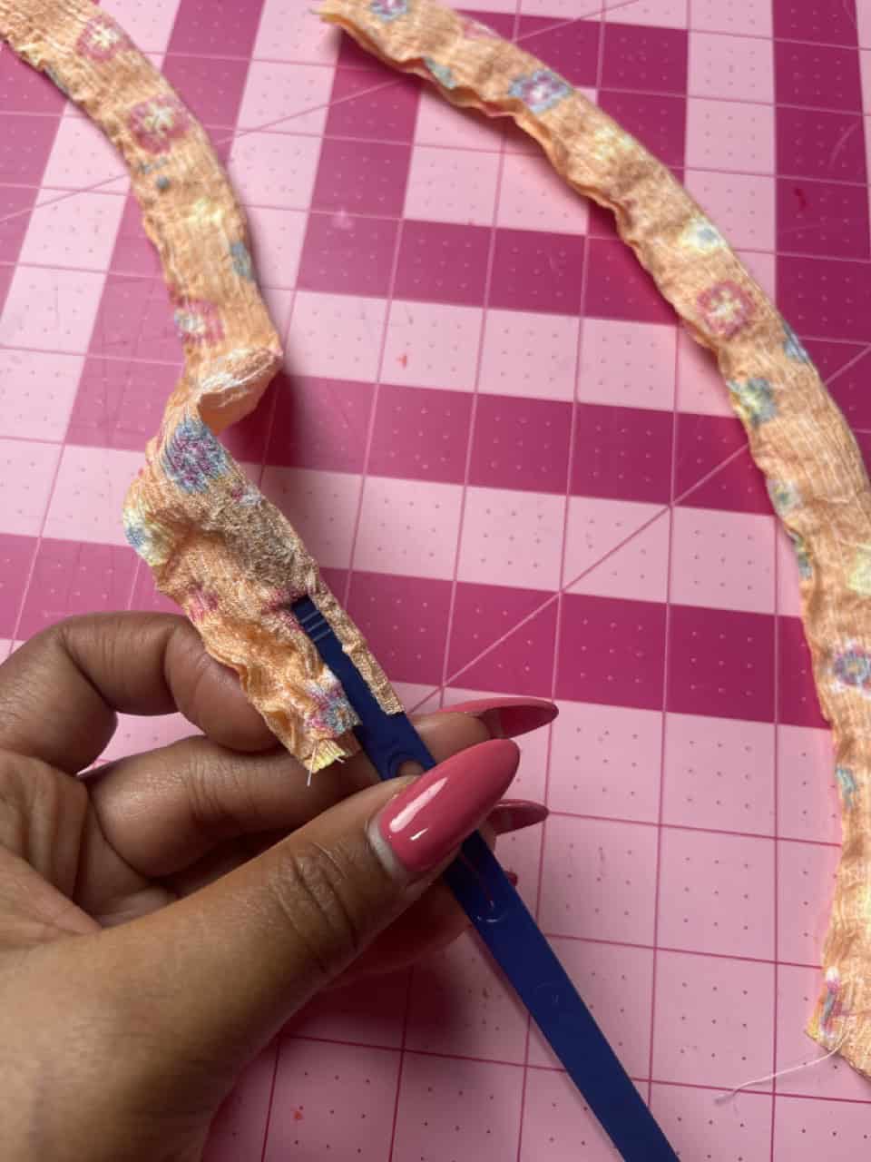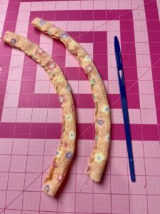 3. Using the loop turner, turn the straps right sides out. The Clover Loop Turner is one of my new favorite tools. It makes turning straps so much easier!