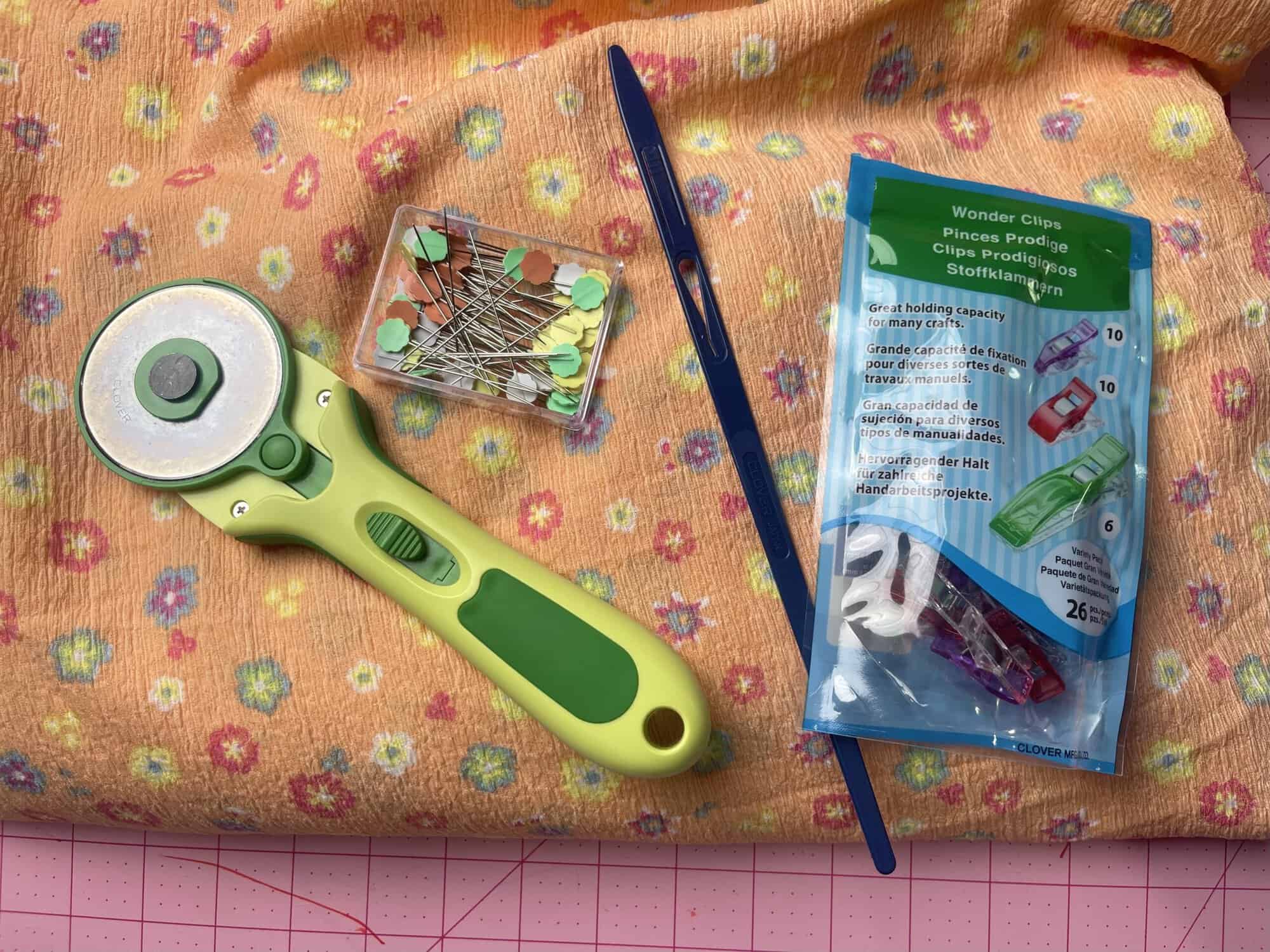 Cut out the pattern pieces using the instructions on the pattern. I used the Clover Rotary Cutter because it cuts smoothly and quickly. It is especially helpful when the fabric has a little stretch.