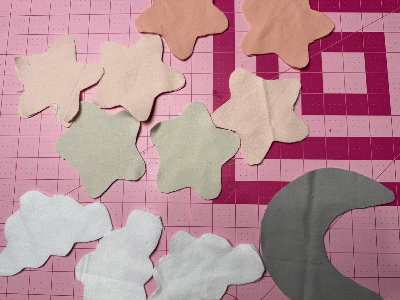1. Draw or print the shapes or designs that you want for the mobile. I printed out some shapes for a baby mobile, which were a crescent moon, stars, and clouds! Printing out the shapes and/or designs is also an easier option if you want more complex designs.