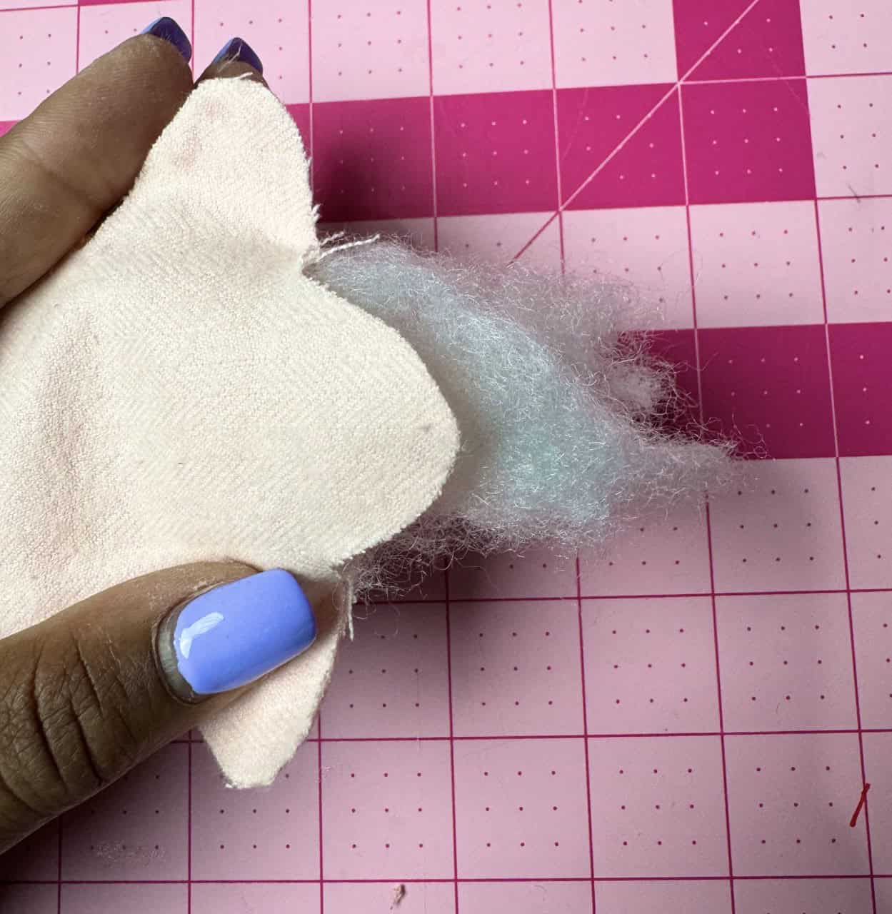 4. Fill with polyfil. Do not overstuff as it can distort the shapes. Seal the small opening of the shapes with glue.