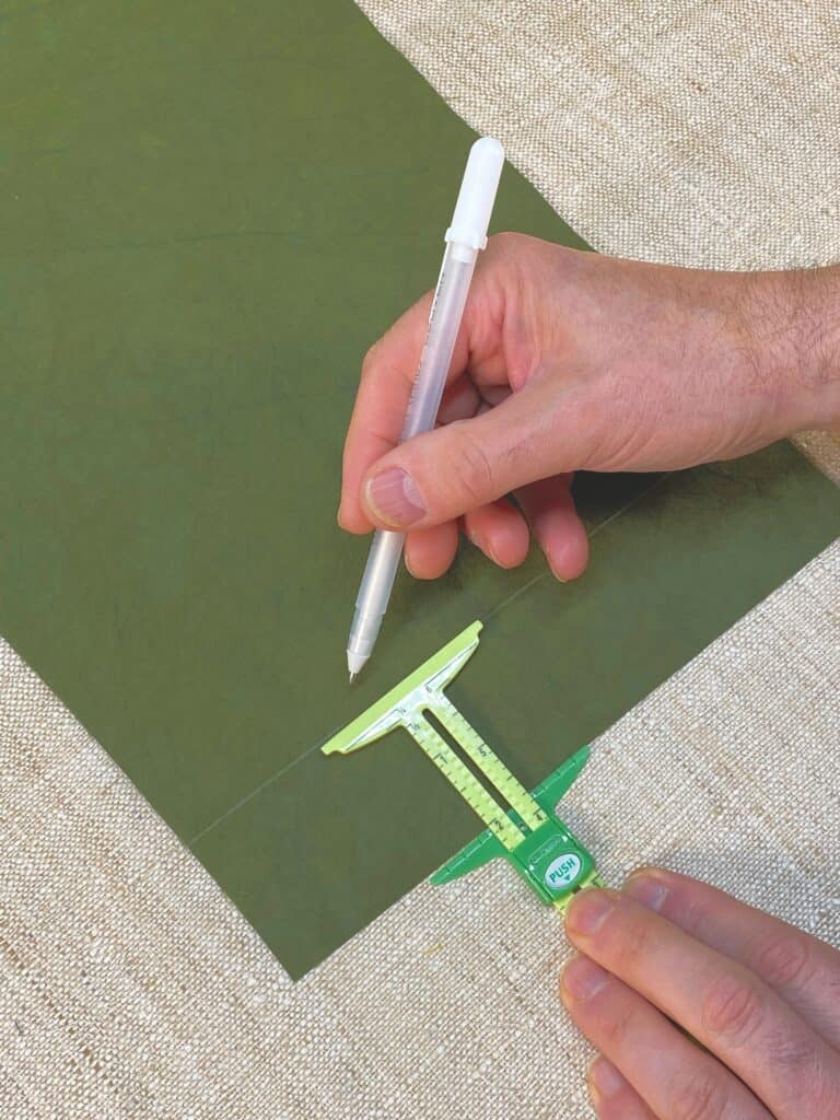 The 5-in-1 Sliding Gauge is a deceptively simple measuring tool with an adjustable sliding arm that locks into place at 1/8 in increments. This allows us to effortlessly measure distances, making it a breeze to mark accurate measurements for hems, quilt blocks, and also draw sewing/cutting lines for all our half-square triangle blocks. Don’t even get us started on the compass! The compass enables us to draw a perfect circle (up to 6 in diameter), and anyone who’s ever drawn a circular sashiko pattern can appreciate this amazing feature!