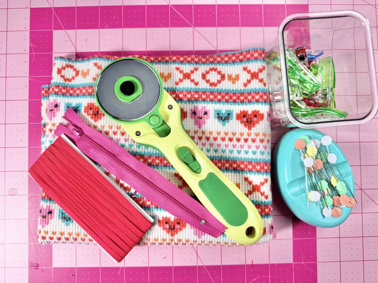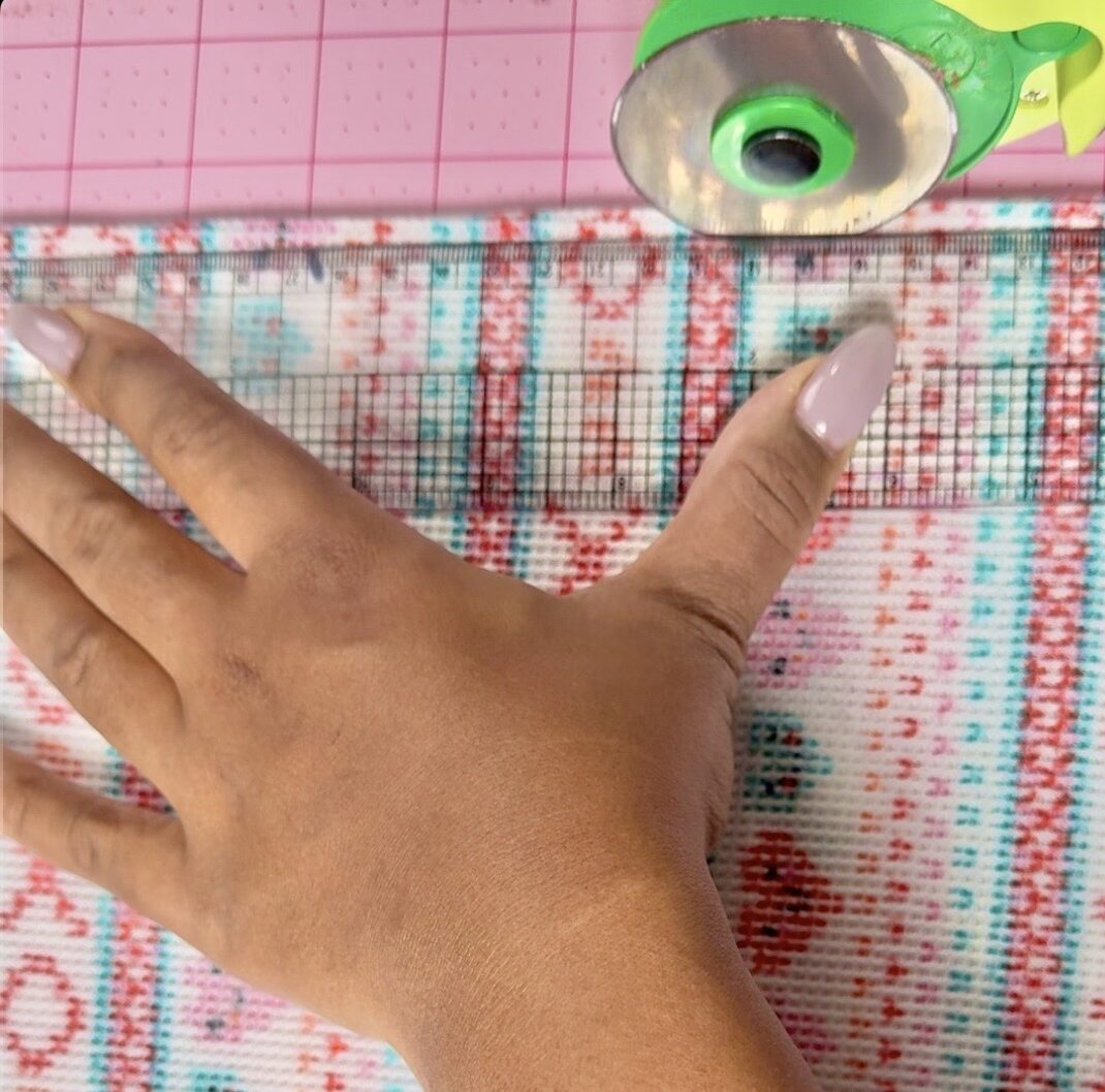 1) Cut two pieces of fabric (12 in x 14 in) using the Clover Rotary Cutter (60 mm).