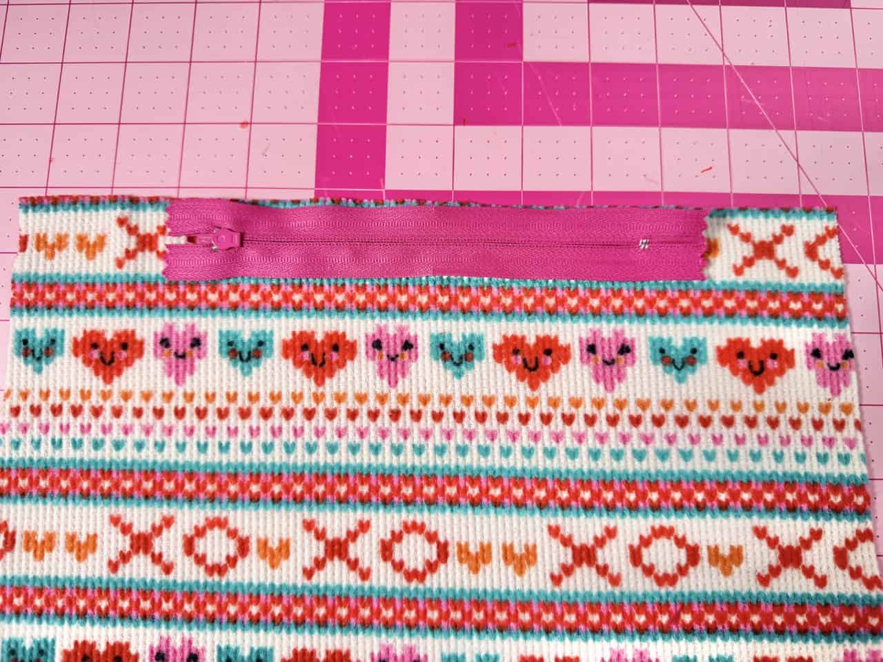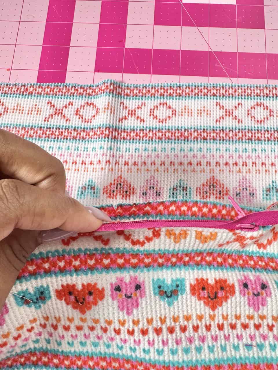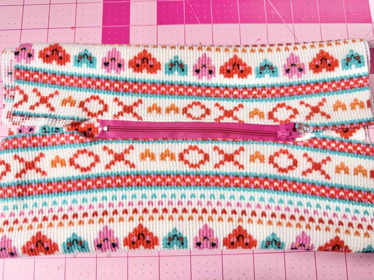 3) Turn the fabric it right sides out. Topstitch the zipper.