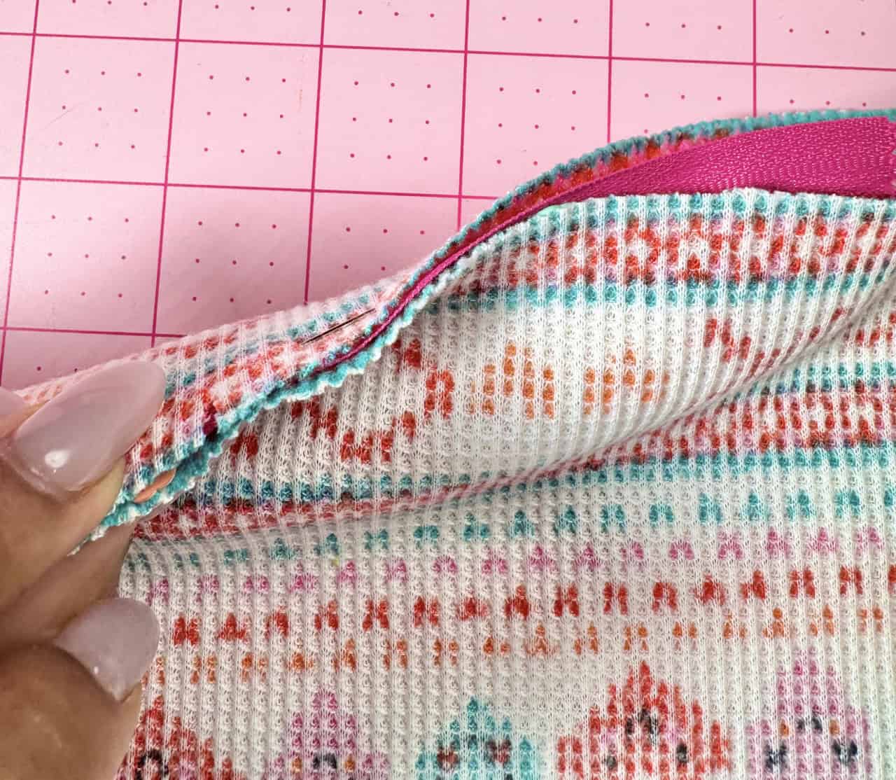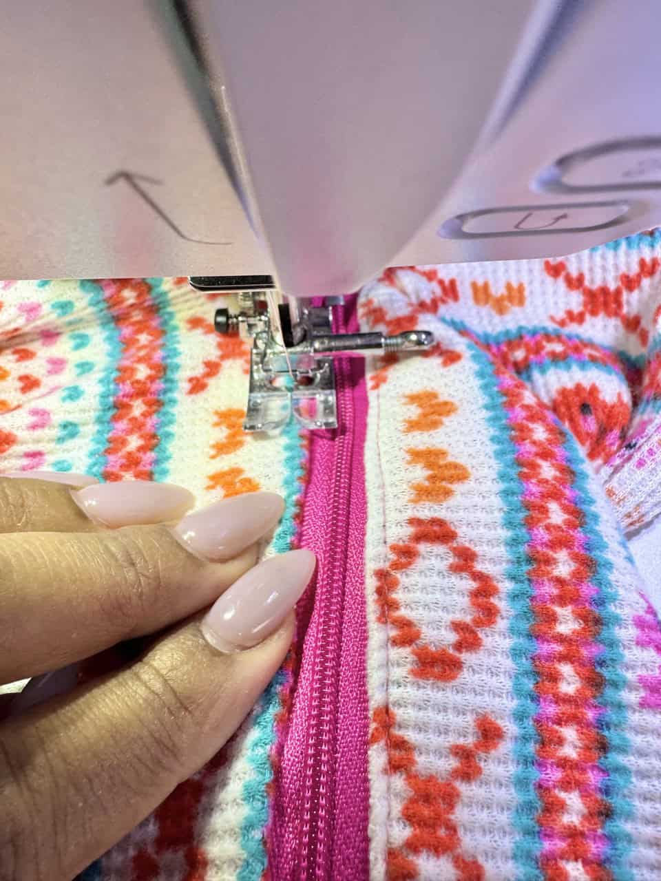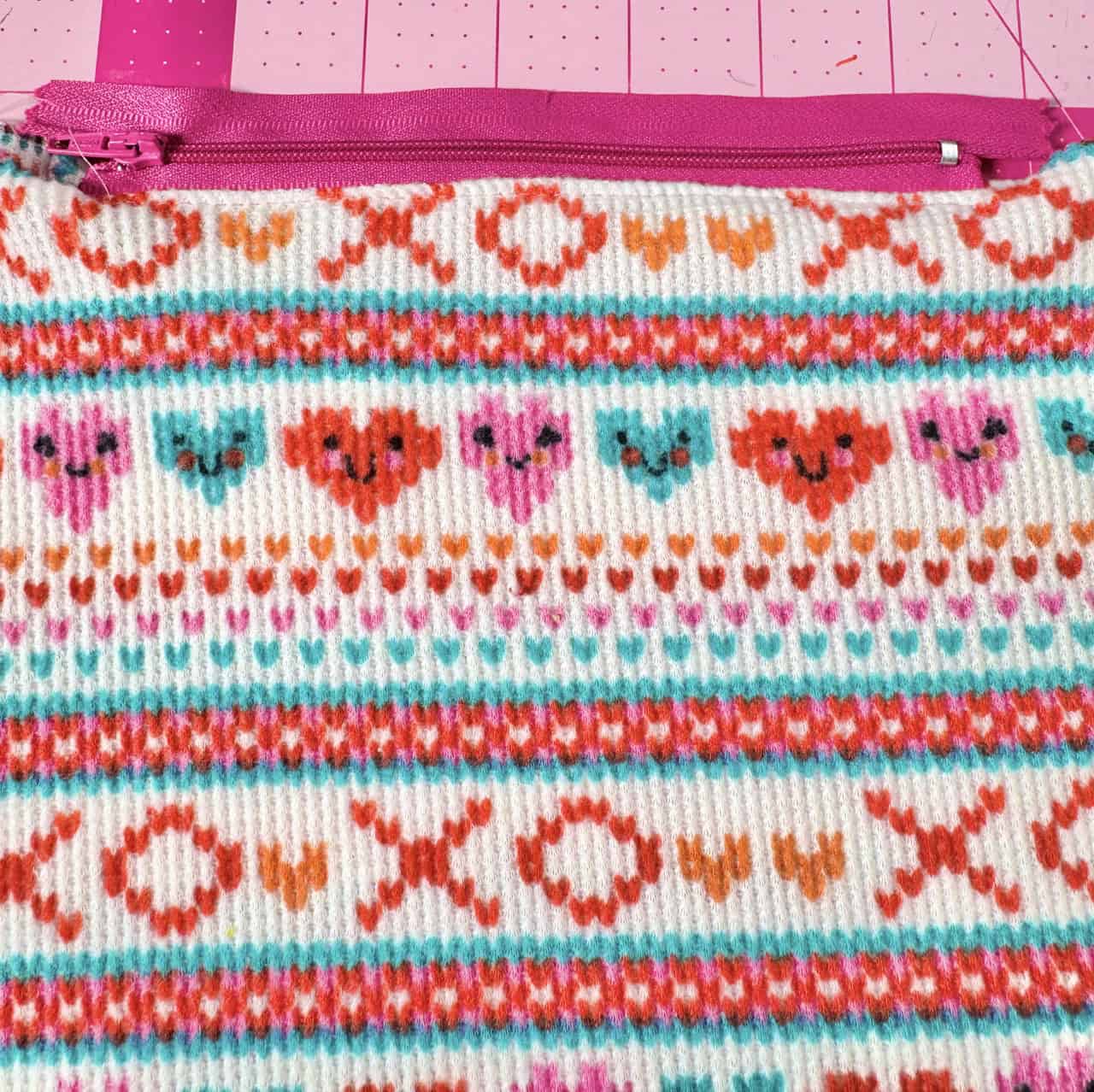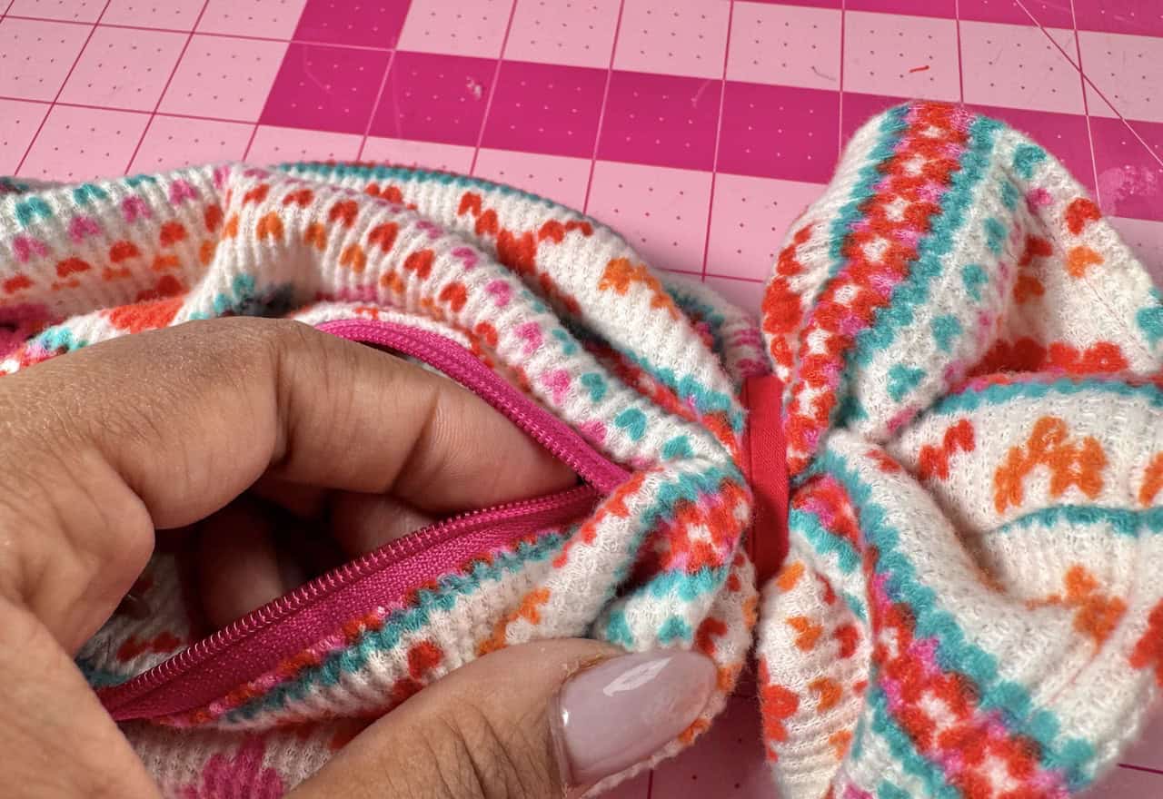 3) Turn the fabric it right sides out. Topstitch the zipper.