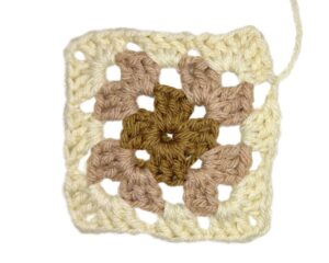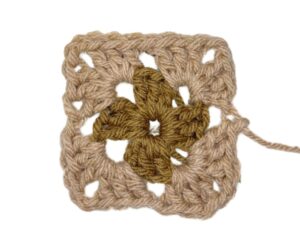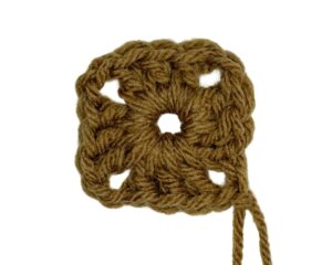*Note: The reason why we did not start each round with half of a double cluster is because then, the joined yarn would be in the ch-sp. This will cause your squares to cave in when sewing. Making a complete double cluster (for the first corner) and then weaving the yarn tail up to the appropriate ch-sp will maintain the shape of the corners.
