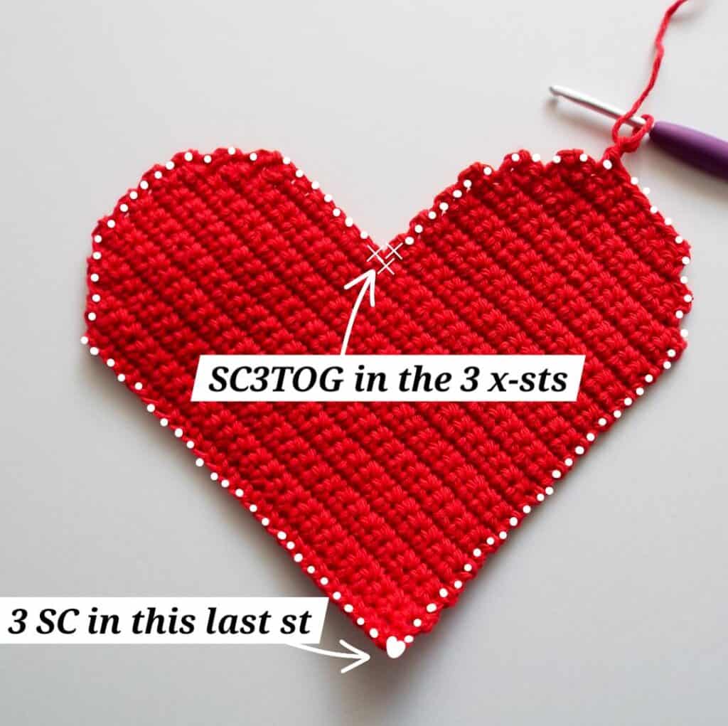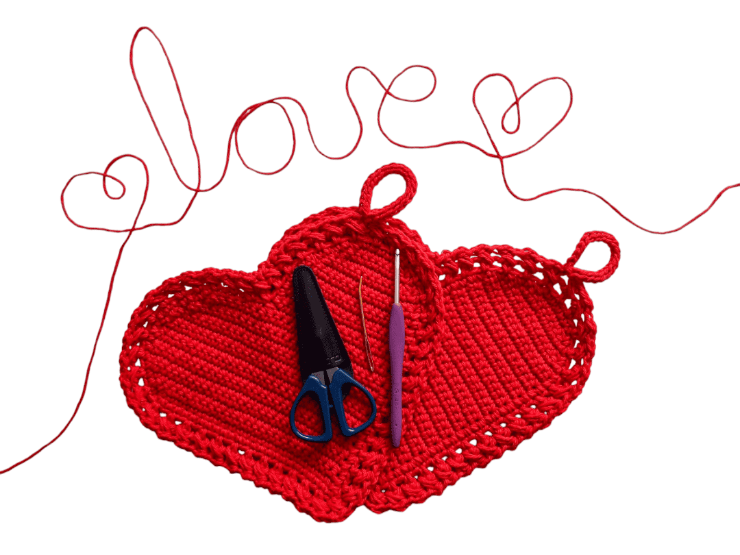 - This pattern is worked in rows and after establishing the heart-shaped design, you will be working around it.
