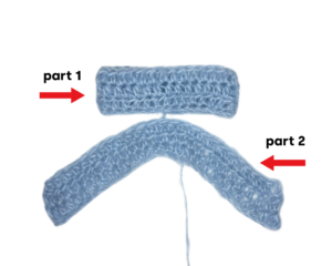 - Step 2: Use the remaining yarn tail from part 1 and tightly wrap around part 2 to create the “cinched” center of the bow.