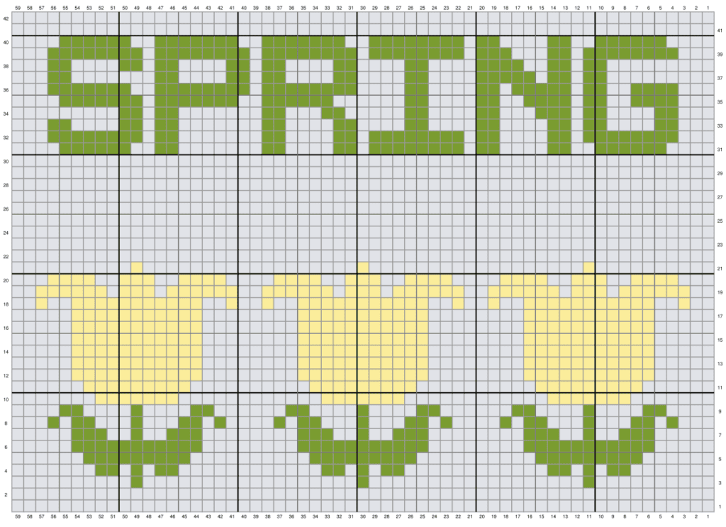 - The pattern instructions are identical to the chart. The direction is worked from bottom to top in alternating rows, starting from right to left (RS). The numbers next to the color indicate how many times the color is repeated.