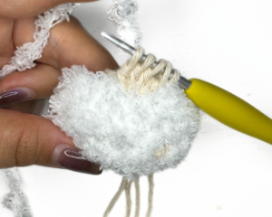 Continue in fluffy White yarn and do not cut the Nude yarn.
