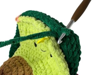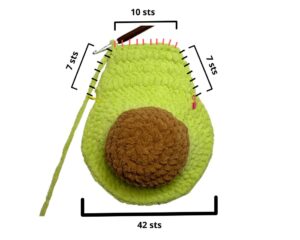 Mark the current st and count 17 sts over. Mark the 18th st. This will show where the avocado will be worked in rows. [img]