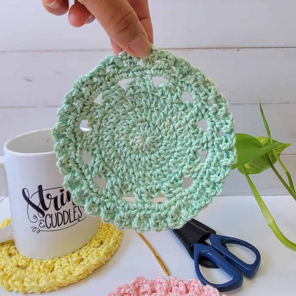 - The gauge for this pattern is not particularly crucial. You can change the yarn weight and hook size to make your coaster larger or smaller.
