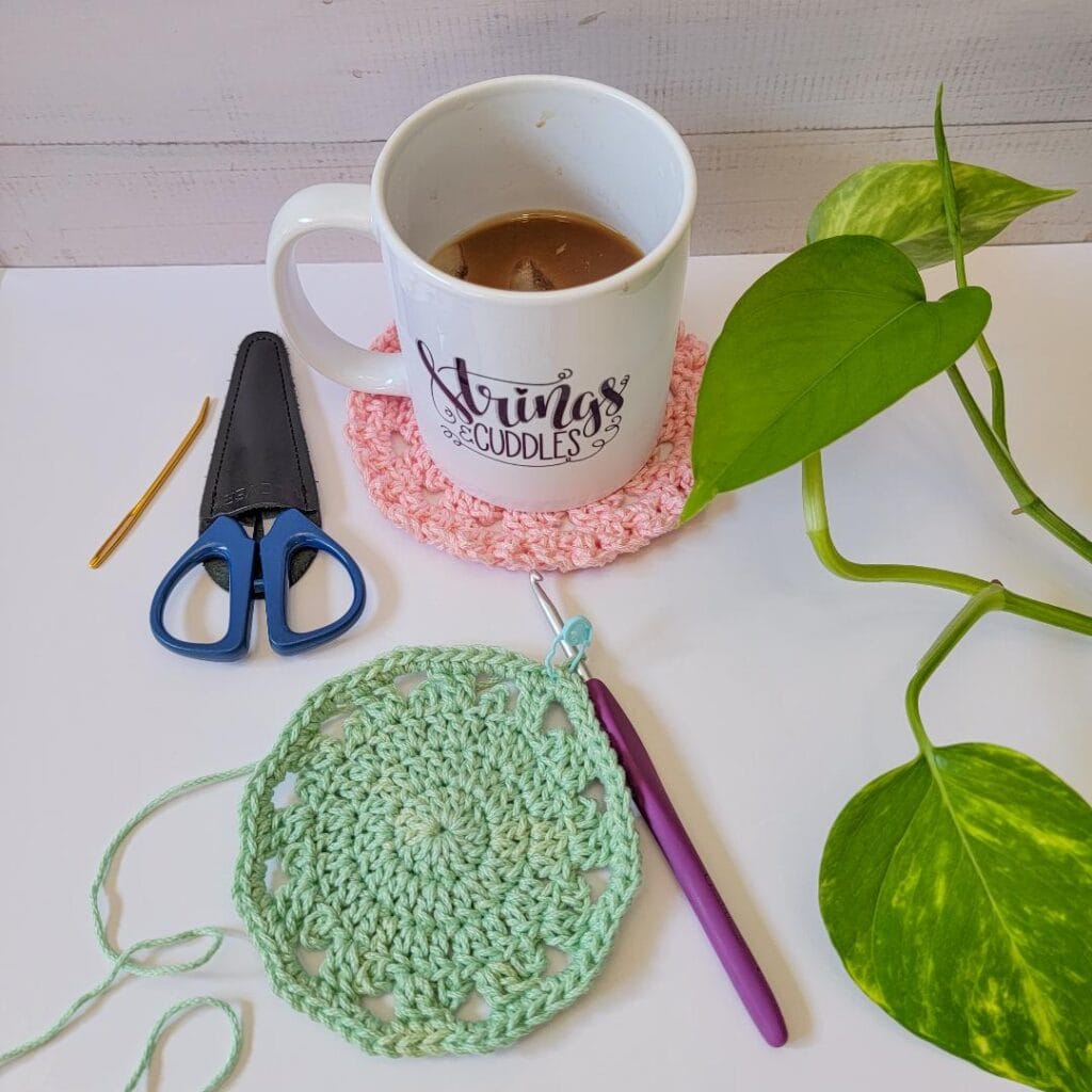 I would love to see your version of this coaster! Please tag me @stringsandcuddles and use these hashtags to share: #stringsandcuddles #stringsandcuddlesdesigns