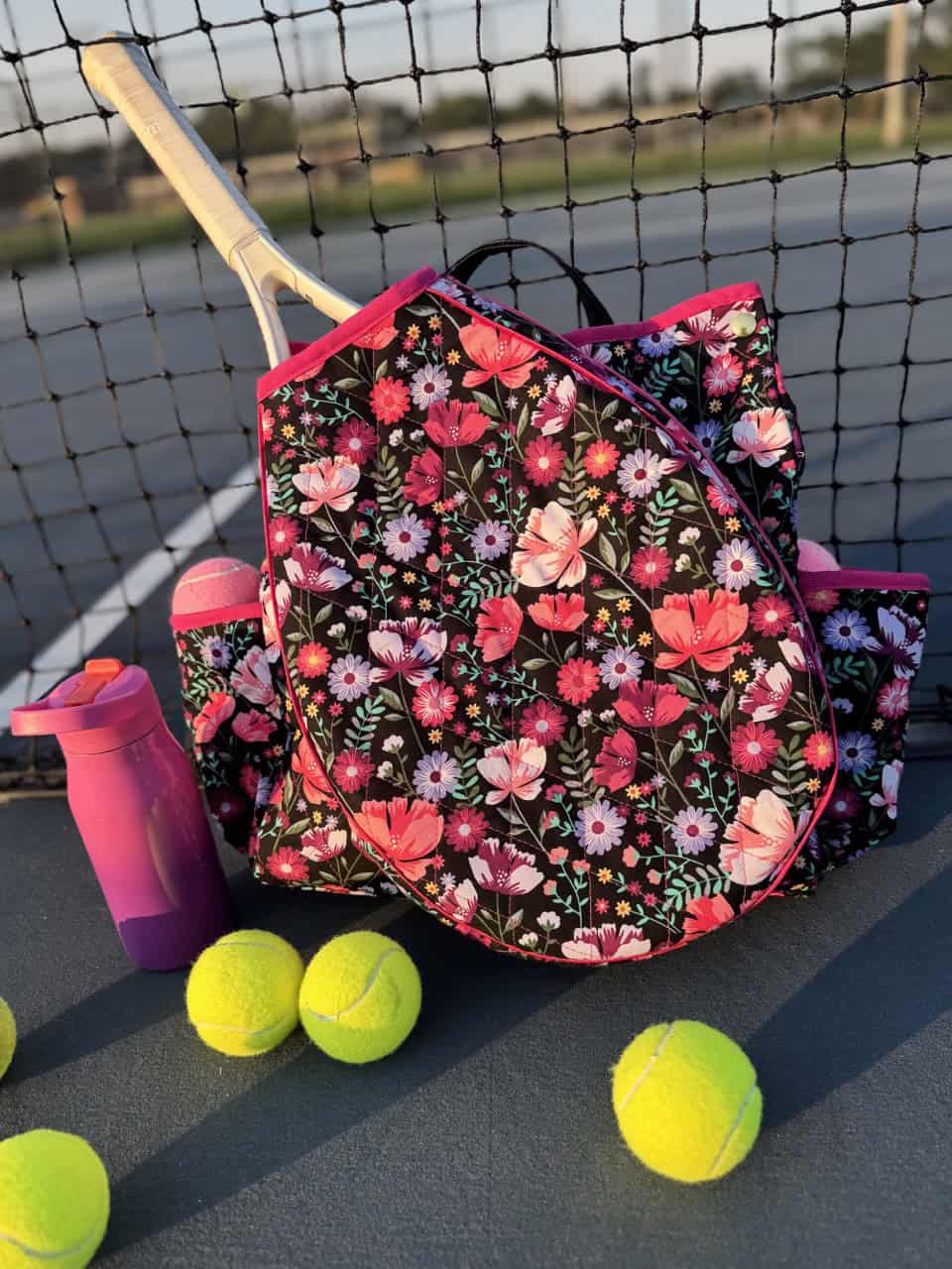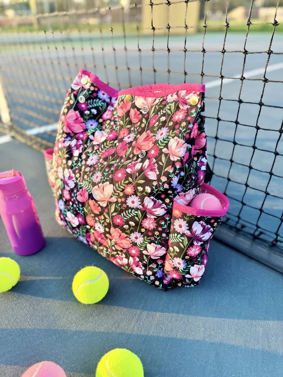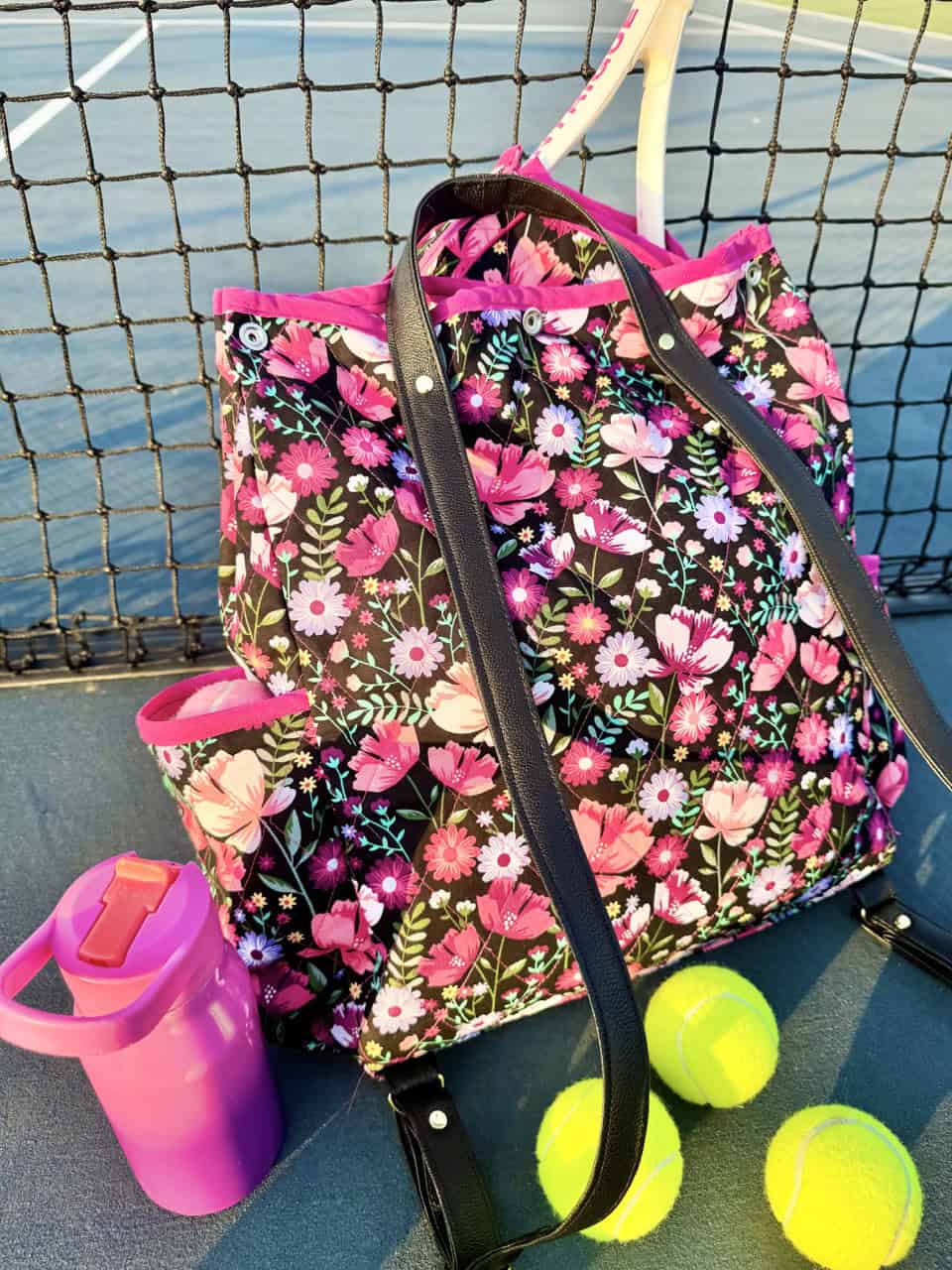 Summer is here and so is your new favorite tennis bag! I just started learning tennis, and naturally, I had to find a way to bring a little of my own style into the game! I found a bunch of tennis bags that were cool, but none really fit my personality and style, so enter this handmade tennis bag, which is super fun to take out with me to the court. It holds your tennis balls in the bag and the tennis rack in a front attachment, so everything’s easy to grab when you’re heading to the court. You can even use it as a pickleball bag. Here’s the fun part. When you’re not playing tennis or pickleball, simply unsnap the racket holder and use the bag as your everyday bag! We are excited to share this tutorial on how to make this bag, so let’s get started!
