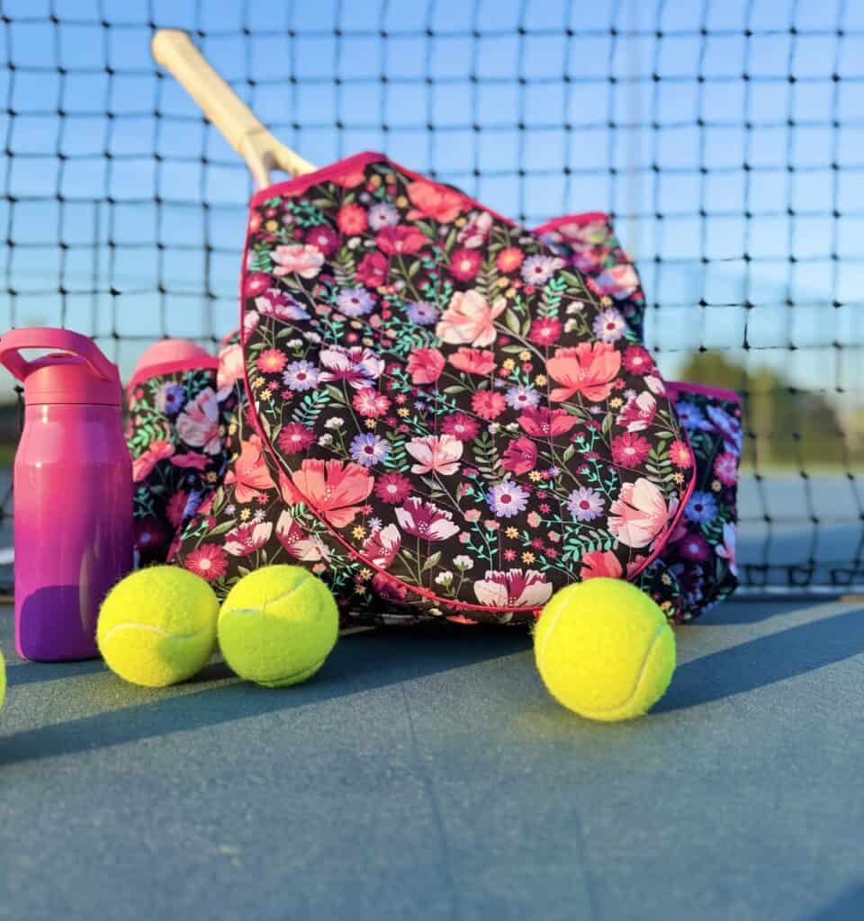Summer is here and so is your new favorite tennis bag! I just started learning tennis, and naturally, I had to find a way to bring a little of my own style into the game! I found a bunch of tennis bags that were cool, but none really fit my personality and style, so enter this handmade tennis bag, which is super fun to take out with me to the court. It holds your tennis balls in the bag and the tennis rack in a front attachment, so everything’s easy to grab when you’re heading to the court. You can even use it as a pickleball bag. Here’s the fun part. When you’re not playing tennis or pickleball, simply unsnap the racket holder and use the bag as your everyday bag! We are excited to share this tutorial on how to make this bag, so let’s get started!