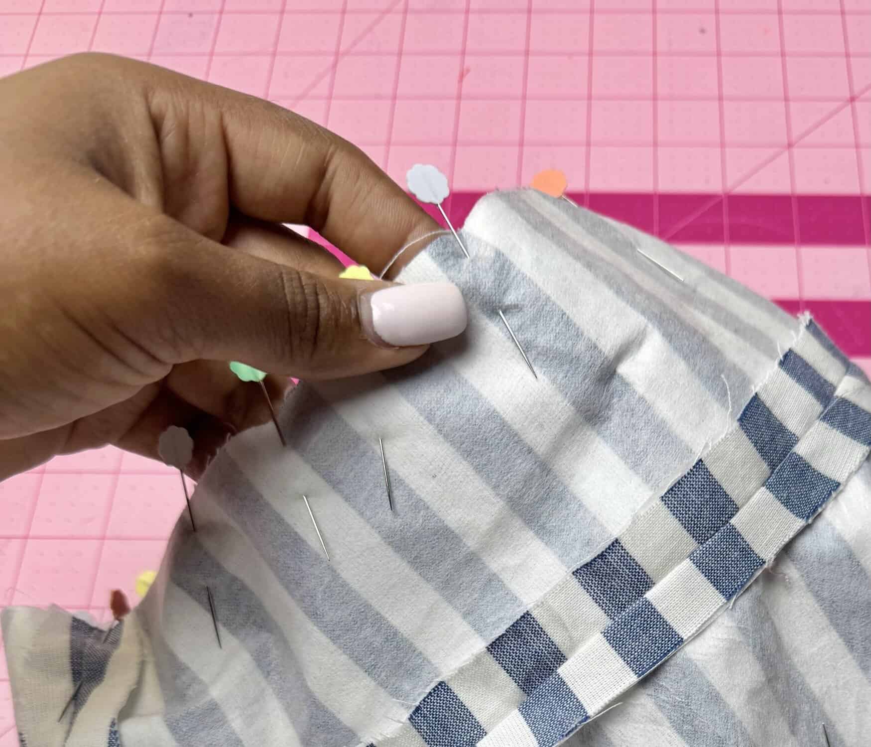 STEP 3: With right sides facing, pin the hat circumference in the brim together. Press the seams open. With right sides facing again, pin the top of hat circumference and sew together. Do not sew the brim together.
