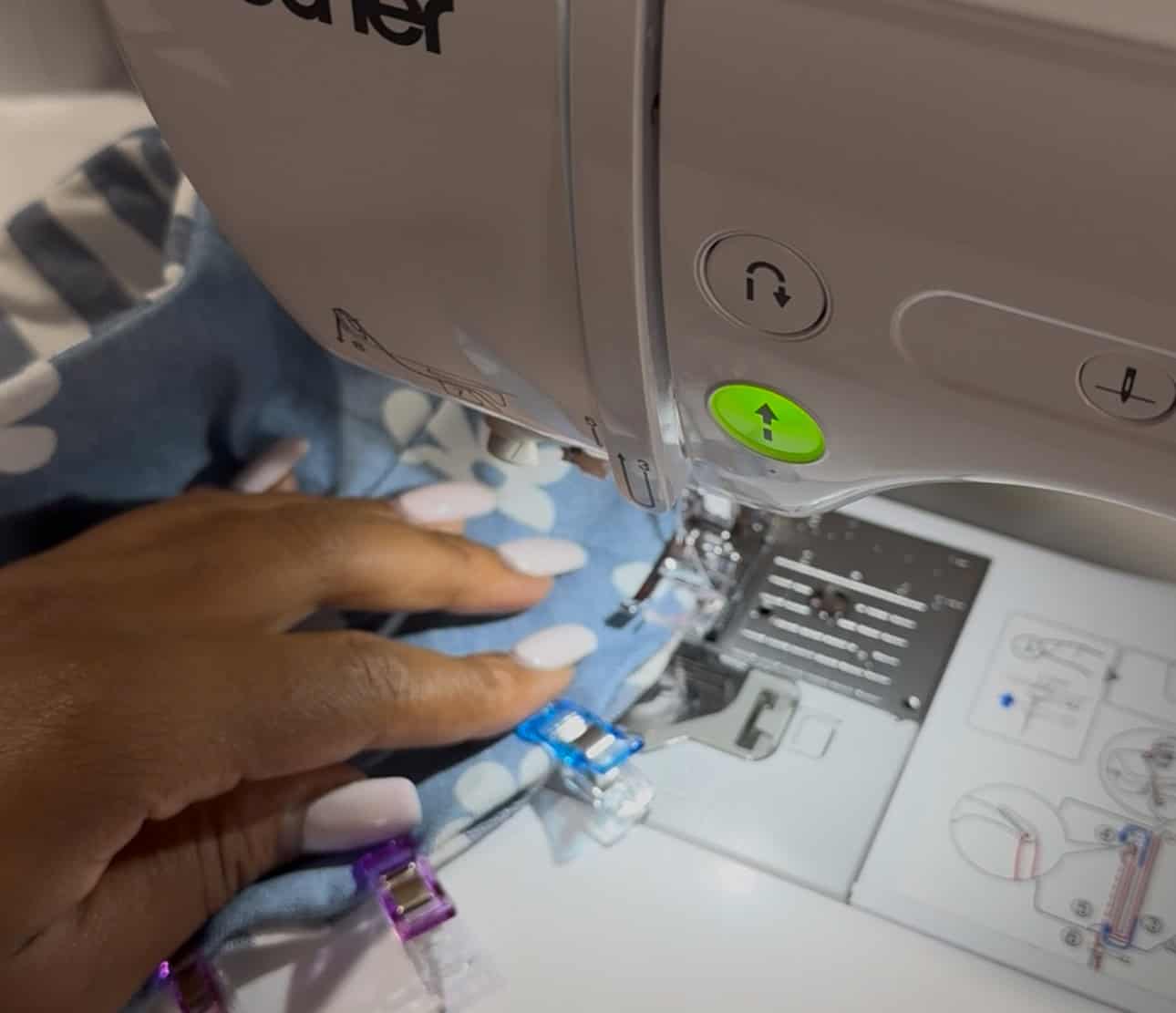 STEP 2: Cut out the two fabrics using the Clover Rotary Cutter (60 mm). When choosing fabric, it’s best to choose woven fabric. I used denim fabrics for my hat. If you use heavier fabrics, you don’t need the medium weight interfacing. However, I used the interfacing because one of my fabrics had a slight stretch. Use the Clover Wonder Clips and with right sides facing, hold the sides in place and stitch together.
