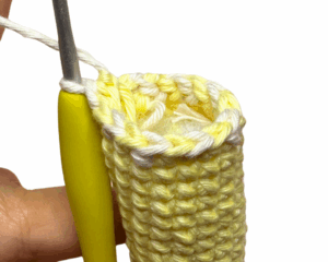 - Round 5b: ch 1 (counts as the first st), (blo) sc all around, in Yellow yarn, slst into the first st to join the rnd [16]