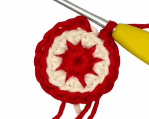 Fasten off the Tan yarn and continue in Red yarn.