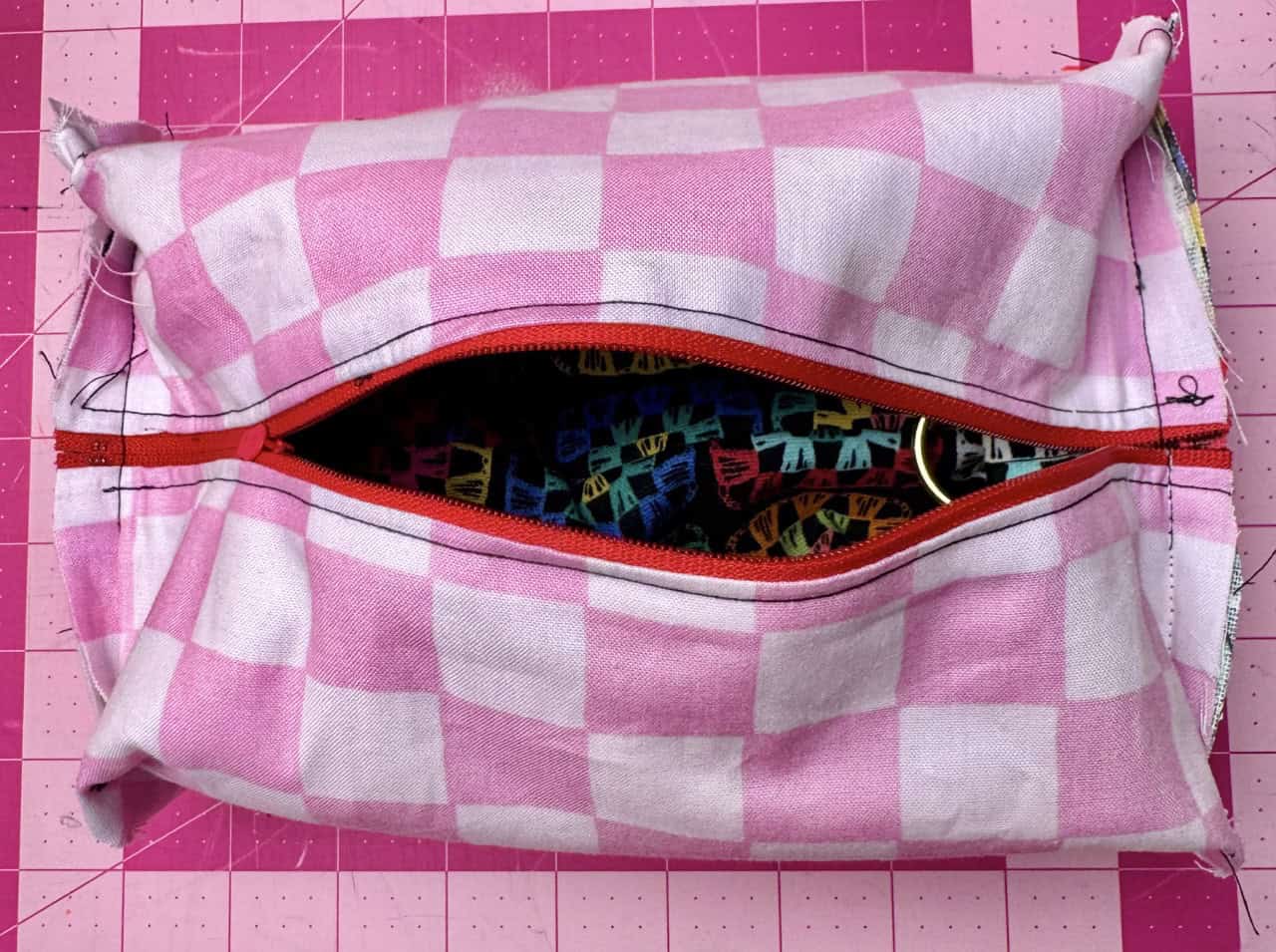 6) When done boxing the corners, this is what your bag will look like. Turn the bag right sides out.