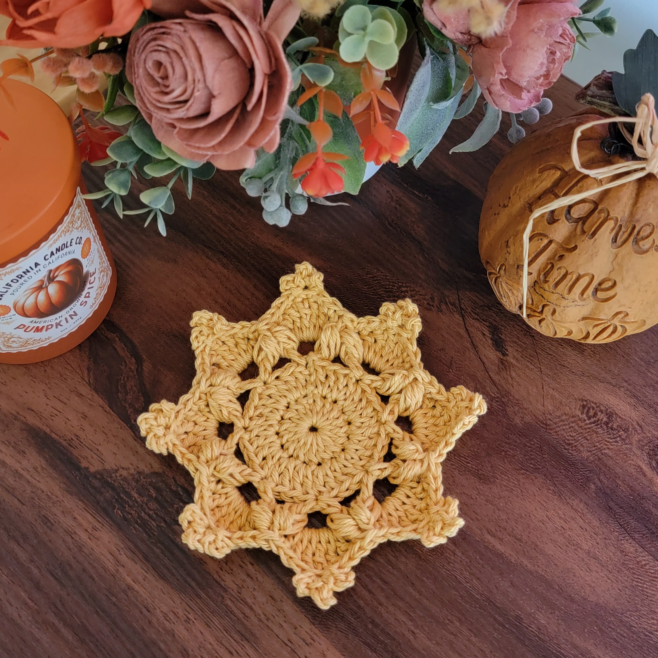 Additionally, it is harvest season, which calls for festivities, get-togethers, and gratitude! Elisa from @stringsandcuddles created the “Celebration Coaster” by combining a flower, a star, and a firework into a single design with festivities in mind. The good thing about this pattern is that it can be made in any color or colors to fit any celebration! This pattern is very easy to make and a lot of fun. Basic crochet stitches such as chain, single, double, treble, picot, and puff stitches are required for this pattern. Ready to take on this project? Come on, let’s begin!