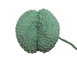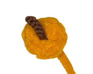 Fasten off and leave a long tail for sewing onto the pumpkin. Do not close up the piece yet.
