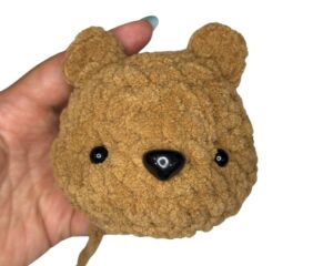 - Important: I prefer to glue in my safety facial features because my amigurumi makes are intended for decor only. If you prefer to place the backings in, be sure to follow the modified instructions in the pattern. Forming the eye indentations may look differently for you.