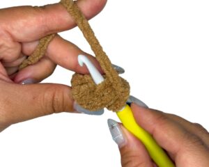 - Tip: Why are we using the magic circle starting method here but not in the other parts of the pattern? The reason is because with this type of yarn, the greater the stitch count, the more difficult it is to pull the hole closed. With our ears only being 4 sts, yarn snagging won’t be an issue and the magic circle allows us to create the rounded shape we want.