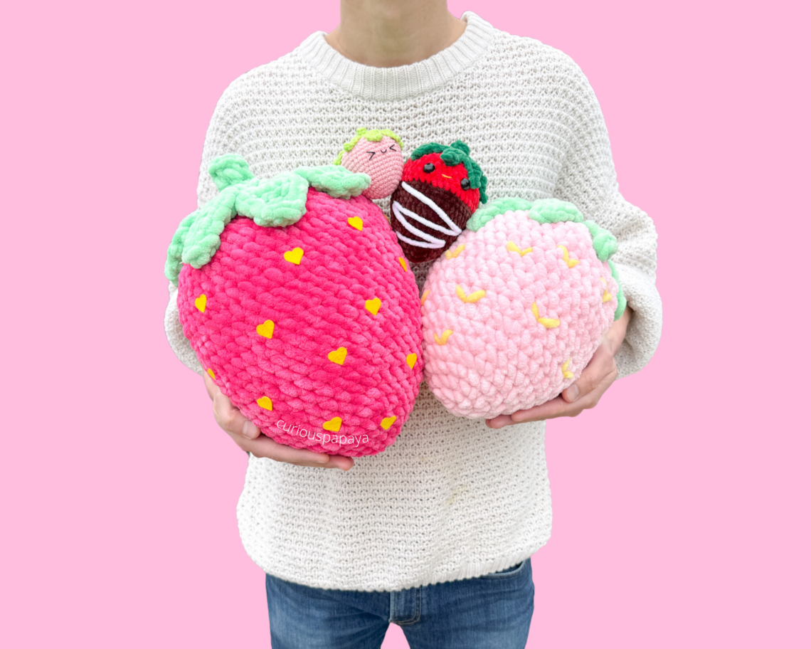 Hello! It’s Amy from @curiouspapaya and this month is all about the strawbs. Strawberry ice cream, strawberry pie, strawberry cake… I’m a firm believer that you just can’t go wrong with strawberry. Try to prove me wrong! Here’s a super easy/fun make for everyone prepping for their upcoming markets. This pattern contains modifications so that you can use any yarn to make it. With thinner yarn, it’ll come out a little shorter and squat-er. And that’s the fun part! Strawberries come in all different shapes and sizes. No matter what you…