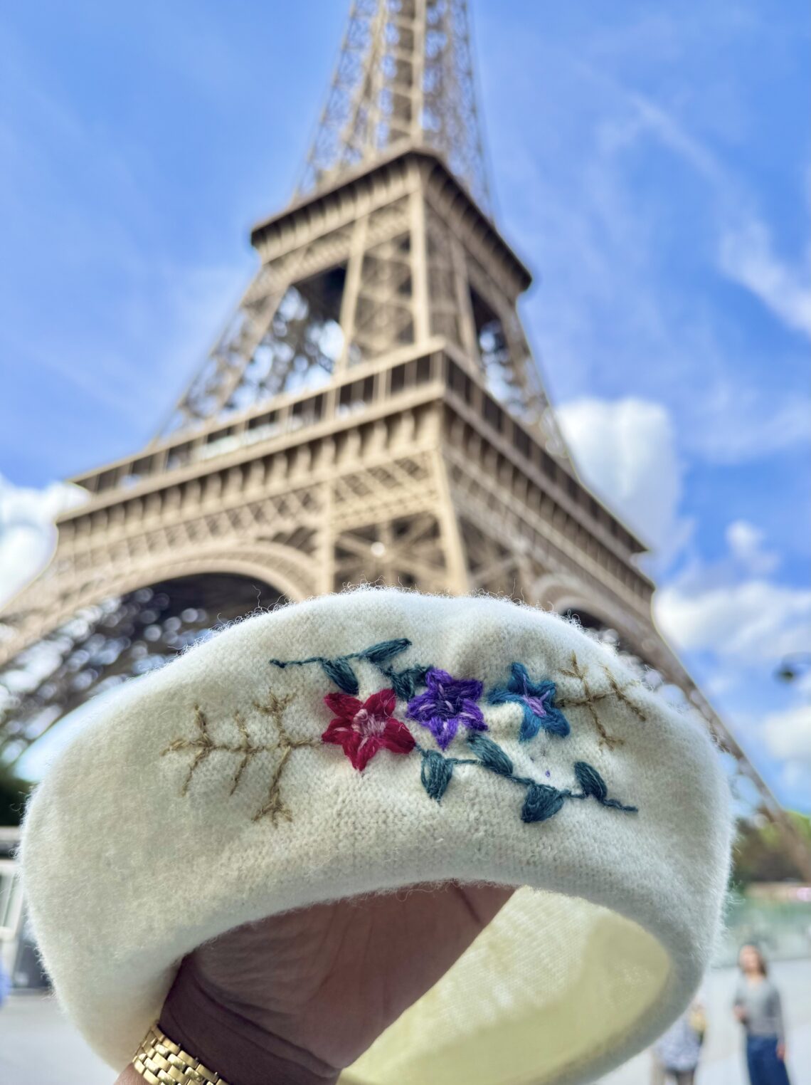 There’s nothing quite like Spring in Paris. As I travel to Paris this season, I wanted to bring a bit of that Parisian charm into my wardrobe, starting with a popular accessory, the beret! The weather in Paris is not too hot and not too cold, which makes a beret the perfect transitional piece for the weather. I hand-embroidered my beret using Clover’s new Darning Yarns 🙂 Traditionally, it can be used to repair worn-out areas of knits and crochet items, but it’s also perfect for embellishing any simple accessory…